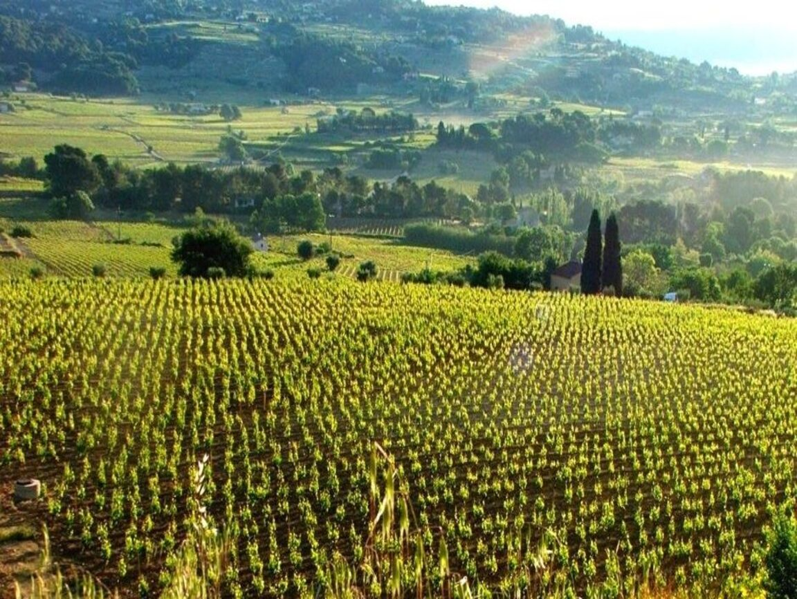 Le vignoble est à l’abri du massif de la Sainte Baume au Nord qui culmine à 1147 m et niché à l’intérieur d’un amphithéâtre de collines boisées tourné vers la Méditerranée, donc orientées Sud. C’est un terroir de coteaux, assez pentus et donc les vignes sont plantées sur des restanques entourées d’oliviers et de garrigues. Ces restanques sont des terrasses soutenues par des murets, perpendiculaires à la pente. Les vignes ne peuvent pas être plantées dans le sens de la pente, déjà parce que c’est pentu et ensuite en raison des pluies parfois violentes qui s’abattent sur la région.
