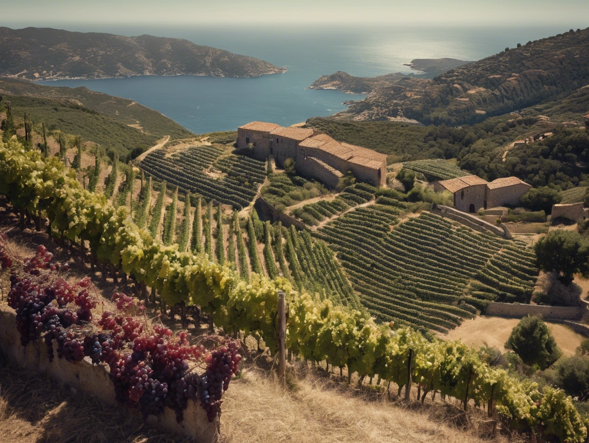 Les vignes sont relativement bien protégées des vents, parce qu’ici ils soufflent un peu dans toutes les directions, le Mistral qui vient de Provence, la Tramontane des Alpes, le Gregale des Apennins, le Libeccio de Gibraltar voire le Sirocco du Sahara. Mais elles bénéficient surtout d’un ensoleillement exceptionnel, c’est un climat méditerranéen bien sûr, toutefois influencé par la mer et les montagnes qui amènent des effets rafraîchissants.